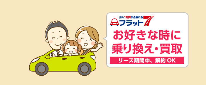 フラット7は、お客様ひとりひとりの生活に合った新しいお車の乗り方をご提供致します。車の修理代がかかる、税金や車検代を気にせずに乗りたい、車を買い替えるのに余裕がない、家族でもう1台車が欲しいなど、お客様の様々なお悩みにお答えします。